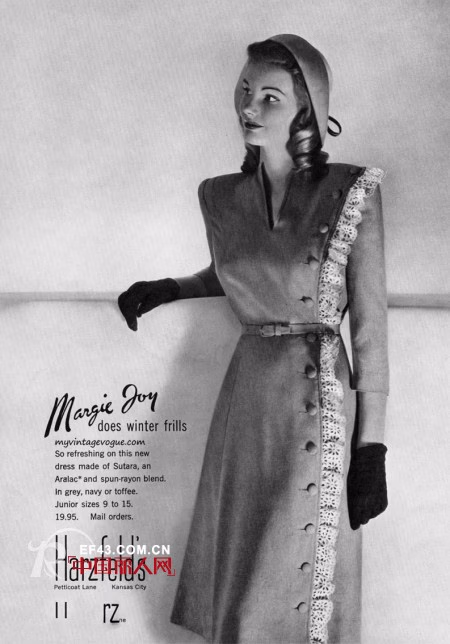 垫肩以及略为简化的裙摆是40年代的关键词。