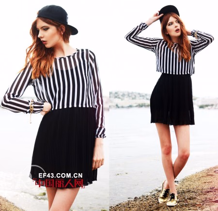 两件式连衣裙采用了不同材质的组合,棉质连衣裙舒适贴身,雪纺条纹短外搭打造了轻盈透明感的装扮,要想穿出街头范儿,选择棒球帽绝对是不错的选择、