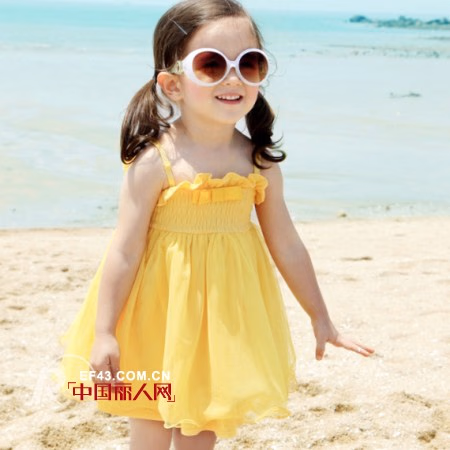 夏日宝贝海边游玩必备,超可爱的木耳边柔纱裹胸吊带裙,亮丽的柠檬黄彰显宝宝的活泼与精力十足,可调节的肩带设计根据宝宝自身情况调节,穿着更舒适,双层蓬松裙摆公主范儿不可抵挡。