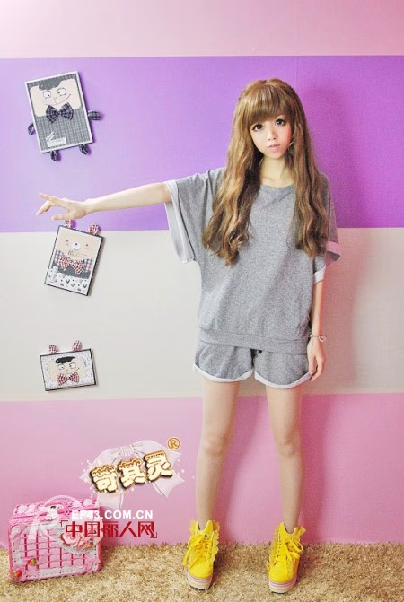 夏季90后女装超爱的潮流套装,低调浅灰色蝙蝠袖T恤+短裤套装,彰显随性自我的青春调,袖口卷边剪裁个性十足,搭配亮黄松糕鞋,青春就是这个范!