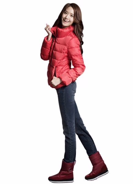 少女时代允儿,被人称之为长腿美女的她,一身亮红色纯色系棉服,简单的款式,更加的凸显出青春可人的模样,灿烂的笑容让人倍加的温暖,冬天你还会觉得冷吗?搭配一条修身牛仔裤一双雪地靴,青春本就不该太多的装饰,就可以美美的。