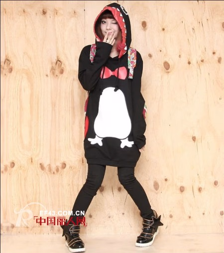 冬季黑色是主打色,冬季的款式几乎每件衣服上都会带点黑色,感觉穿上黑色就会特别的温暖,可爱冬季少女装卫衣,简单的黑色,可爱的卡通图案印满整件服装,可爱的个性帽子设计,让女生显得格外的充满朝气。背上一个双肩包,还猜的到我的实际年龄吗?