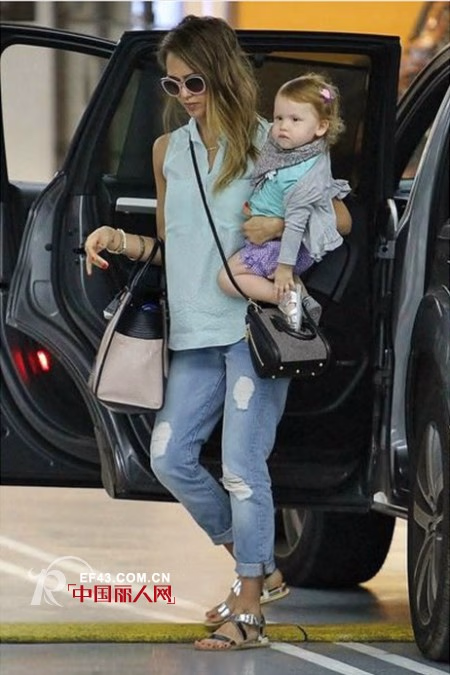 明星就是明星,穿什么都有范儿,就是一身简单的搭配而已,也逃不过记者的抓拍。浅蓝色的无袖宽松衬衣,搭配水洗蓝的破洞牛仔裤,个性的卷起裤脚露出脚踝,银色平底鞋更是摆脱平日里高跟鞋的舒服,随意的搭配也能搭出潮流范儿。