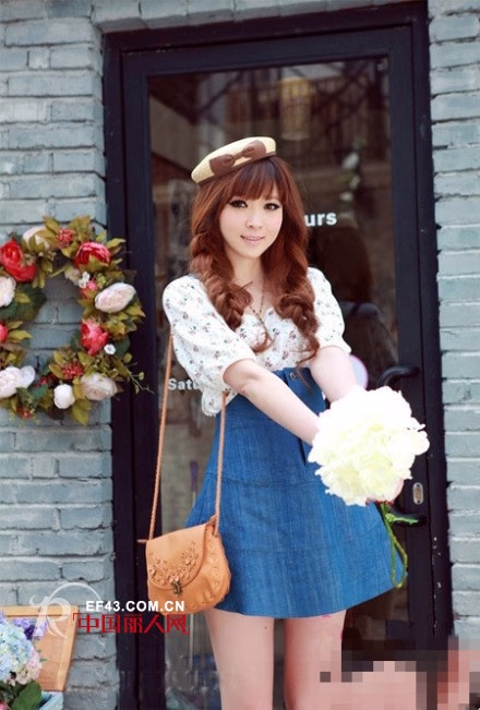 深蓝色的牛仔裙 搭配搭配性感五分袖小碎花上衣,既有一种青春活力,又不失可爱时尚,再加上一个复古色系小挎包 ,瞬间提升了品味。