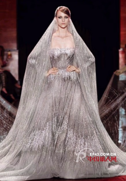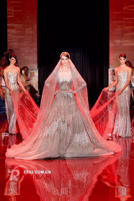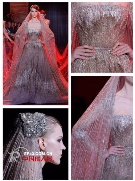 关注过Elie Saab 2013秋冬高级定制秀的达人们一定还记得压轴的“Elie Saab新娘”Nicole Pollard身着银线刺绣婚纱亮相,3位超模身穿伴娘礼服托着裙摆优雅现身,完美的礼服让整个秀场蓬荜生辉。不知这件华服触动了多少女孩儿的心。