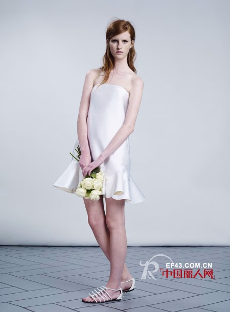 别怀疑,这也是一件您能在婚礼上派上用场的婚纱。光鲜的真丝质感,简洁的抹胸式短裙,在裙摆处超大荷叶卷边带来极强的灵动效果。如果您想给您的婚礼减负,那么不凡走一下这样的路线。
