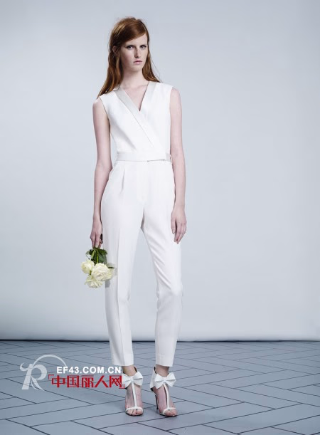 没有错,这也是Viktor & Rolf秋冬新品婚纱系列之一。已经彻底抛开了婚纱必须是裙子的定义,深V无袖OUTFIT,仅此而已,无比的简洁干练。或许在婚礼上新郎和新娘都穿着裤子,也是特别的酷呢!