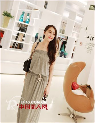 灰色抹胸长裙,精致纯色系的款式,穿着特显气质,披肩微卷长发搭配这一条美裙更是散发出优雅迷人的女性魅搭配一款黑色简单的单肩包,高贵柔美的气质不需要言语来修饰。