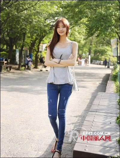 白色的针织T恤是夏季百搭时尚单品,竖条纹的款式拉长MM们的上身比例,搭上紧身的九分裤,简约的时尚就是如此轻松的事情。穿上白色的平底鞋,也能让MM们跟韩国麻豆一样都有完美高挑好身材。