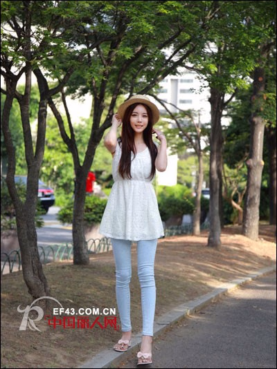 白色的蕾丝上衣,收腰的设计,让MM们展现柔美曲线,稍微有点裙摆的造型显得清秀且甜美。背心的款式,露出纤细的手臂,很是娇小玲珑,搭配上浅色的牛仔九分裤,清新淡雅的装扮一定是夏日街头镜下的焦点。
