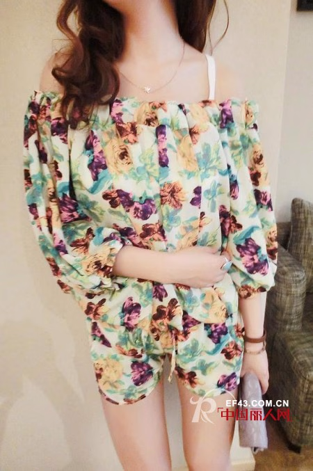 一字领露肩宽松雪纺两件套套装,可以分开穿的两件套套装 很小女人味的哦,松紧型 一般身材的MM都可以穿,夏季是度假的高峰期 这款是度假旅游必不可少的一款哦