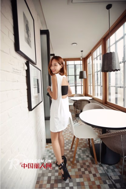 白色连衣裙从前面看一定是平淡无奇,但是玄机在后面,微露肌肤的设计既增添了性感的小女人味,又让单品变得与众不同,搭配黑色绑带凉鞋,完美身材就要秀出来。