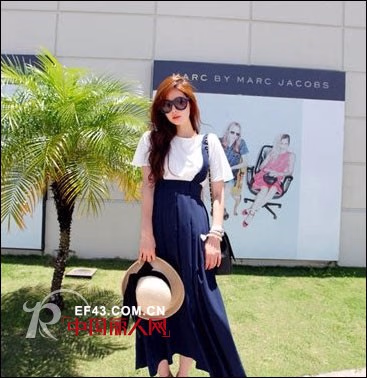 经典的黑白搭配,优雅浪漫很有简约韩范儿呢,高腰的雪纺长裙轻松为MM们打造完美九头身,编织草帽搭配上墨镜,很是清秀呢。