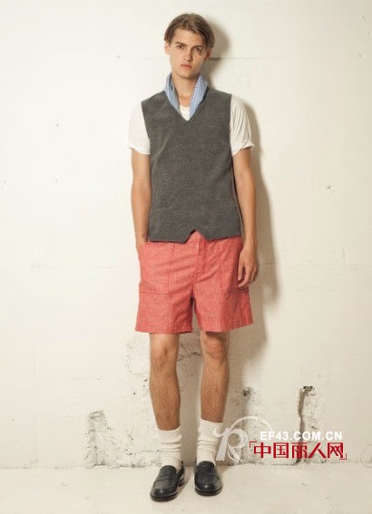 颇具北欧穿着风格的叠搭装扮,搭配西瓜红短裤,皮鞋和袜装的选择无疑是亮点中的亮点,POLO衫是男士必备款哦。