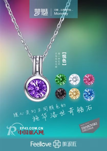 据悉,【梦魅】系列采用的均为施华洛世奇【炫美莹彩】锆石,每一颗锆石均使用钻石级别的切割标准,并刻有施华洛世奇专属“SWAROVSKI ZIRCONIA”镭射标志。钻石般璀璨的光芒让消费者惊喜不已,施华洛世奇的正品保证更是让他们放心购买,特别是熊银匠独家研发的4款彩色锆石套装和3款可随心变换不同颜色锆石的吊坠,更是得到众多消费者的青睐。