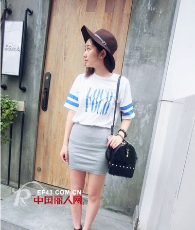 这样的混搭风是不是很有时尚味道呢!蓝色条纹的T恤,很有运动风格的上衣,搭配上灰色的半身裙,修身的包臀裙,展现MM们的柔美曲线,复古风格的单肩包搭配上遮阳帽,很是养眼好看哦!