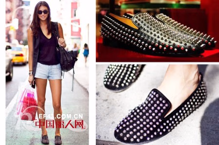 在摇滚风盛行的当下,令女人们尖叫、疯狂的NO.1鞋履品牌Christian Louboutin适时推出了铆钉系列鞋。有低调中性朋克的平跟铆钉鞋、酷味的铆钉踝靴还有优雅性感的尖头全铆钉高跟鞋。无论你是怎样的女孩,穿什么装束,拥有一双猩红色底的铆钉鞋就能让你时尚无比。它的忠实粉丝名单上有维多利亚.贝克汉姆、安吉丽娜.茱莉、玛利亚.凯莉……