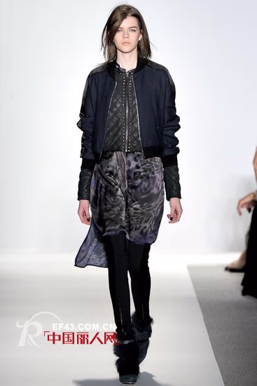 少女情怀般的植物印花连衫裙,大量的雪纺面料和针织材质依然在设计中大量被采用,这些女性化元素与镶有钉头的绑腿裤、缝着铆钉边的短外套混搭起来,显得随意又性感。