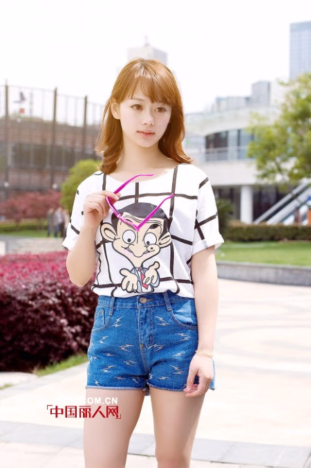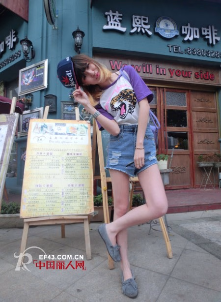 虎头又现“新面孔”,动物图案永远都是这么的受欢迎,紫色拼接袖穿出潮流味道。破洞牛仔短裤高腰线穿法,拉长腿部曲线,教你夏天一招变高妹。