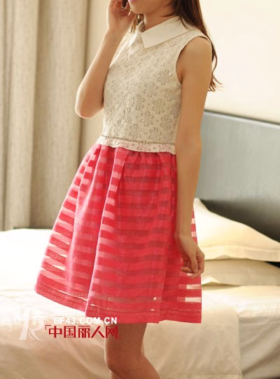 白色绣花衬衣式的上衣,衬衣领口很有淑女范儿。连着红色的蓬蓬公主裙,还有透视效果,横条相间设计,若隐若现的视觉效果,将内敛与热情柔和在一起,碰撞出不一样的激情。
