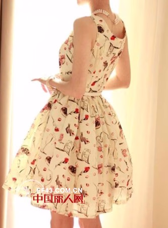 图案色彩很丰满的连衣裙,整个着装效果很能凸显身段,上身贴身设计,腰部束紧。裙身部分弧度很大,上下对比性强烈,将公主裙的效果凸显。
