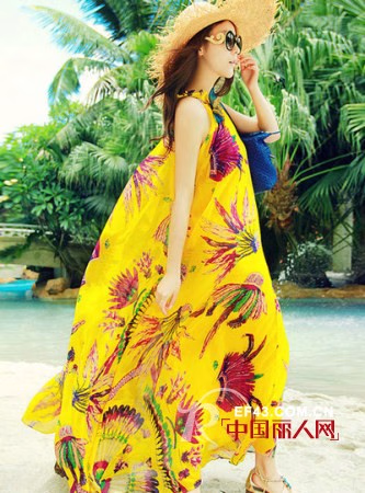这一身黄裙如同凤凰图腾,够宽敞够长,当海边的风吹起,裙身也一起随风飘起,更有飘雅气质,海边度假不错的选择。