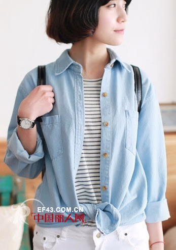 复古BF风水洗简约全棉浅蓝长袖牛仔衬衫外套,一款BF风随意简单的牛仔衬衫,可以系起来,可以当外套,可随意搭配。简洁新潮。