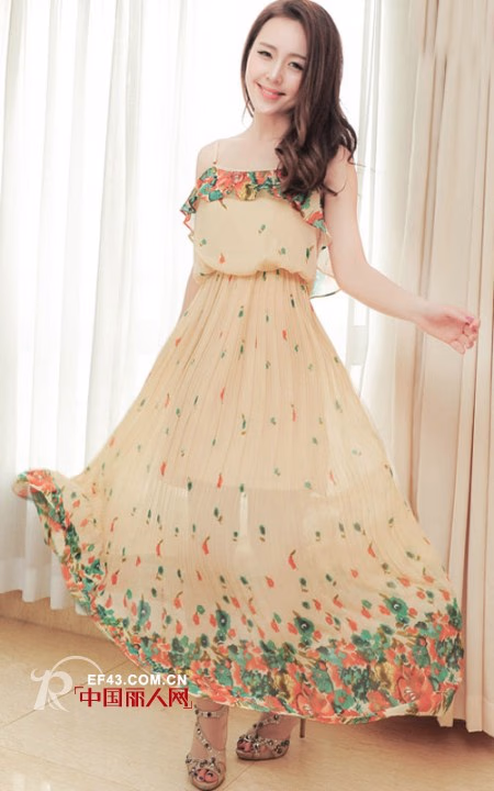清新飘逸甜美沙滩裙,时尚简单吊带设计,加上炫彩印花点缀,优雅大方的裙身,腰间收腰设计,上身效果极佳,非常飘逸动人。