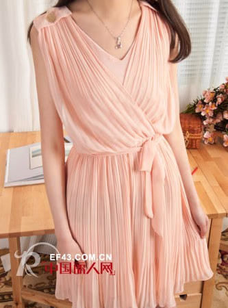 小A字型配腰带雪纺连衣裙,优雅飘逸。