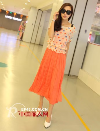 糖果色的半身长裙让人爱不释手,长度刚好到达小腿腹部,能露出脚踝部的美丽弧度。细小的压褶飘洒垂顺尽显含蓄美。