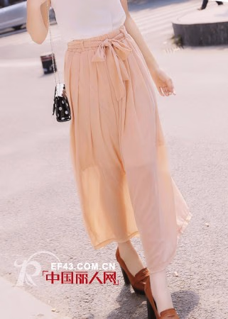 诱人裸色半身长裙给你最亲肤的感受,裙子设计独特,上一半的压褶在下一半散开至脚踝部,清爽透亮。腰间系上蝴蝶结长带,增添不少吸睛度。