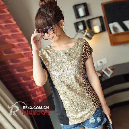 优质柔软的莫代尔面料,温和舒适,清爽透气,弹性不错。 厚度略薄,无内衬,圆领合身版型,乖巧的圆领总是讨人喜欢,前身耀眼夺目的亮片装饰,时尚亮眼,网棉缝制亮片,不易脱落哦,左侧前身狂野的豹纹,个性新颖,彰显自我独特个性哦!柔软的莫代尔面孔,温和细腻呢!
