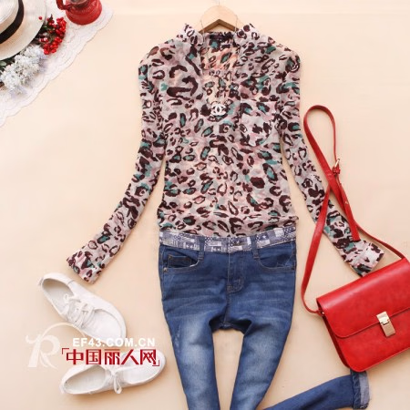 雪纺面料,质地柔软,透气舒适,轻薄亲肤质,面料无弹性。 厚度略薄,立领合身版型,前襟三粒纽扣收襟,套头款式,美丽漂亮的豹纹图案印花,前身一口袋,自然轻盈,前短后长衣边,中长款,随意大方,时尚柔美不失个性。