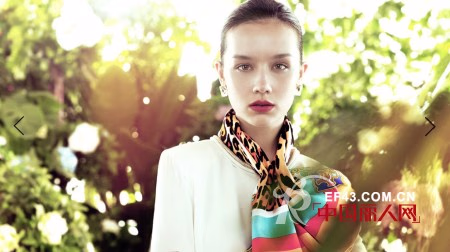 EP雅莹2013春夏丝巾,不仅巧妙应用动物纹路的原始图案,让自然和完美的纹样本身成为对衣物的最好装饰,也将动物纹路组合成牡丹等花朵状,让人兴奋的张力与新意扑面而来。豹纹时尚流行,但不易驾驭,为了璀璨这一季的似锦繁花,也使戴上它的女性平添清新气质和亲和力,EP雅莹2013春夏丝巾上的豹纹做出了诸多调整,既有一贯的狂野魅惑,又被设计师加入花朵元素特有的朝气,豹纹和花朵优雅转换,互动性极强,或大小豹纹渐次组合成为牡丹,或花朵绽放俨然豹子天生的纹路,或豹纹与花朵融合渐变尽显一季的清丽明快,豹纹与花朵的优雅邂逅,让EP雅莹2013春夏丝巾成为这个春夏最懂风情的多面手,那飘逸在肩上、领间的丝巾,绽放出这一季专属女性的优雅之美,帮你完成自如穿梭于各种空间的身份转换。