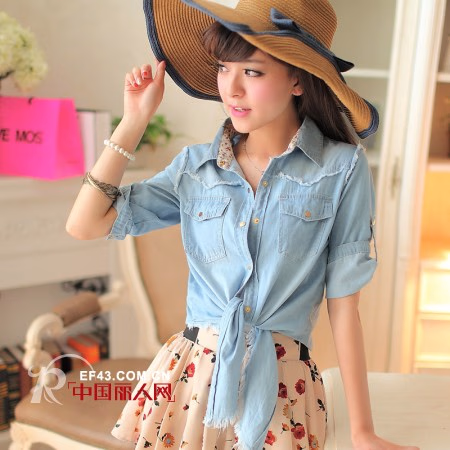 领口小田园的碎花布超精致细节!常规牛仔棉布料,不透也不厚。非常适合春夏天。袖子为五分袖,可以卷起成短袖的。甜美时尚,高档柔软牛仔面料,彰显时尚潮流。手摸时感觉很好,很柔软。如果平时穿着比较挑剔一些的MM,这款一定能塑造您完美的气质,令您更加美丽动人!