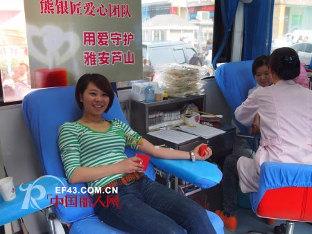 地震的第二天,当从新闻上得知震区血库告急的消息后,熊银匠襄阳团队就行动起来了,立即发出倡议并组织了80人左右的队伍来到位于襄城区鼓楼文化广场的采血车献血。