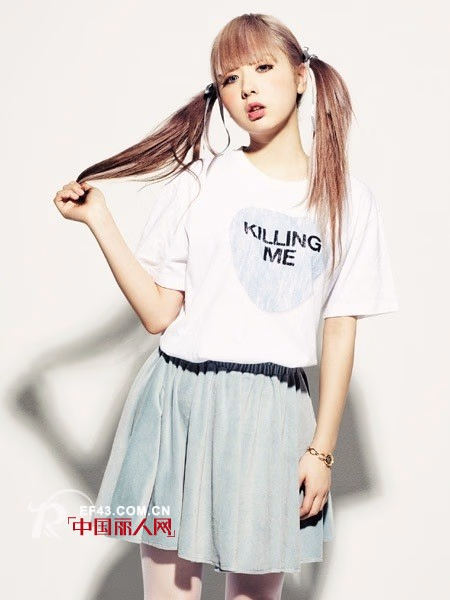 春夏季女生衣橱中最必不可少的就是T恤了,简单百搭的款式可以穿出多变的风格,搭配经典丹宁,俏皮短裙抑或休闲背带裤,都可以穿出不错的feel。也许是几个简单的英文字母或者是玩味十足的潮流图案都是散发年轻人潮流气息的必备元素哦。快来和日韩穿衣达人一起成为“T恤美女”吧。