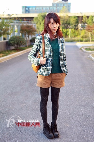 大麻花学院风针织衫搭配格纹小西装,干练利落的学院派完美打造。土黄色短裤你搭配波点打底袜,拉长身线,秀出美腿,让Look完美升级。