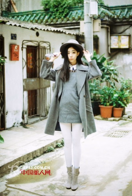 英伦风大外套很有范儿?有木有?灰色和白色的选择让整体看起来清新靓丽,毛呢宽檐帽让街拍感一步到位。