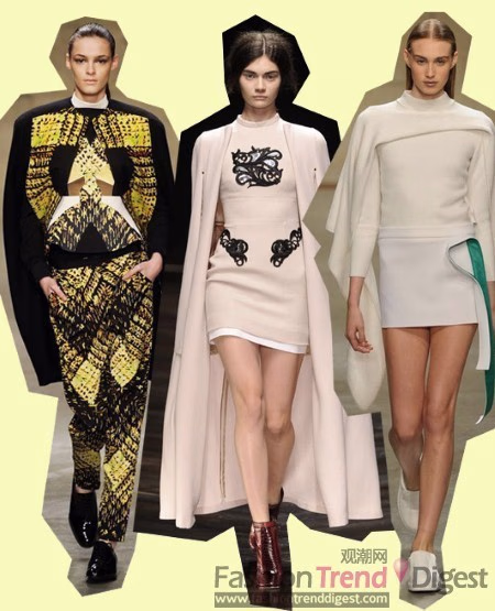 斗篷式外套流行已经有几年了!但是从伦敦秀场上,新的趋势已经呈现,斗篷式的外套有了改良设计,前开口的剪裁以及不规则的斗篷设计让斗篷在2013年秋冬重振雄风。