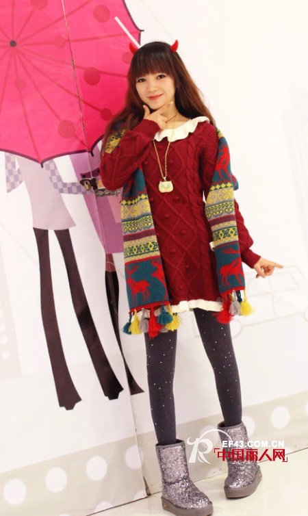长款针织毛衫可以当连衣裙,外搭大衣或短款棉服都是不错的选择。打底袜和银色发光雪地靴的搭配让俏皮可爱味晋升。