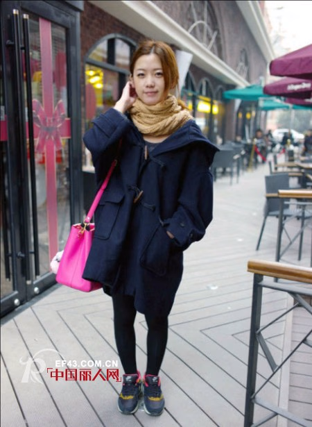 宽松的牛角扣学院风毛呢大衣却穿出了韩范的随意感,搭配紧腿裤&运动鞋,休闲运动风完美打造。桃红色大背包又是街拍亮点呢!