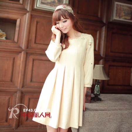 唯美镂空收腰显瘦可打底呢子连衣裙,领口蜿蜒的曲线,优雅烂漫,修饰出女生美美的脖颈;针脚细密的花朵刺绣,配上镂空花纹,点缀出迷人细节。