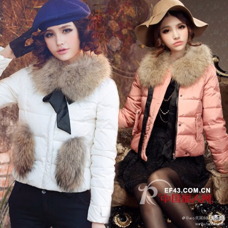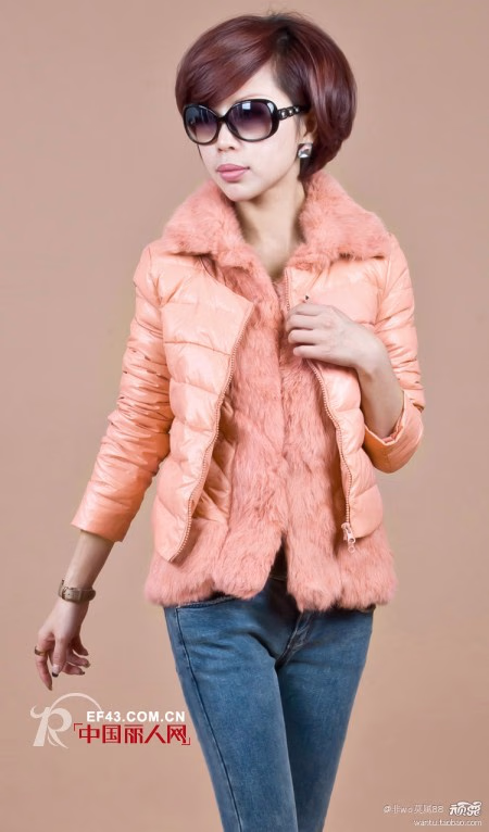 女式短款獭兔毛两件套羽绒服,非常漂亮的毛毛拼接YY,暖暖的粉嫩味道,很是甜美哦!!!