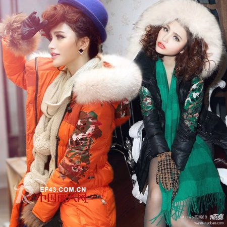 新年印花修身长款羽绒服,最最惊艳的是袖子上的唯美印花图案,很有民族风,黑色的束腰,勾勒出完美腰线,有些弱不经风的柔美哦~~