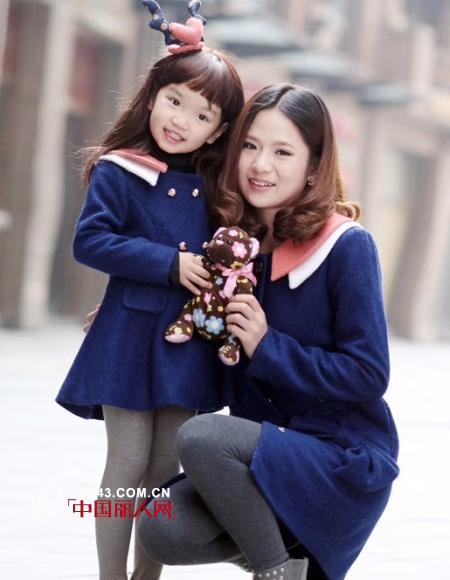 藏青宽松呢大衣外套亲子装,迷人的娃娃领哦,下摆还有超大的蝴蝶结装饰哦,超漂亮哦。