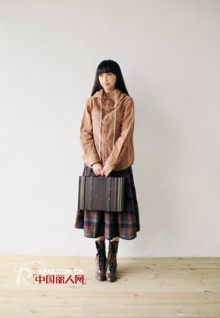 带着民族风的灯芯绒外套上衣既可单穿又可内搭,保暖性和实用性良好,搭配复古的英伦格子裙和咖色绑带长靴,带来一种独特的文艺安静气息。