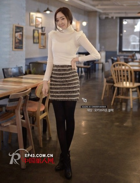 条纹高腰裙,郑美初将清新名媛的韩式风格演绎的淋漓尽致,高领针织衫心机修饰颈部线条,冬季搭配大衣或者短外套都是至IN的选择呢!