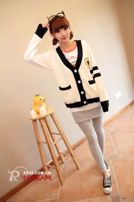 超级学院范儿、很气质的一套搭配。宽松韩版的针织外套,搭配紧身打底裤 很显身材呢。关键的眼睛妆让你变身长辈喜爱的乖乖女。