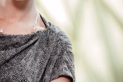领口一侧的中式掐花在简约时尚中透出自信和高雅的东方格调
